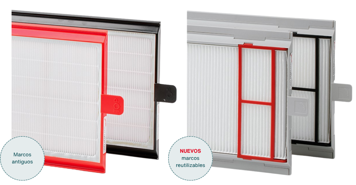 Con el nuevo marco reutilizable de Zehnder, todo eso cambia: en lugar de reemplazar el filtro completo, solo cambias el interior, reduciendo drásticamente el uso de plástico y materiales desechables.